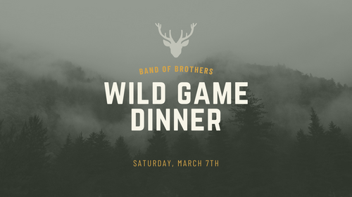 Join us Saturday, March 7 at 2:45 PM for our annual Wild Game Dinner! Enjoy wild game dishes, live music, Gospel teaching, and great fellowship. Early-bird ticket purchases before Dec. 31 include extra door-prize entries, with giveaways for kids too. Tickets available online or in the atrium on Sundays. Early bird ticket purchase before January 28th enters you for a dedicated giveaway!
